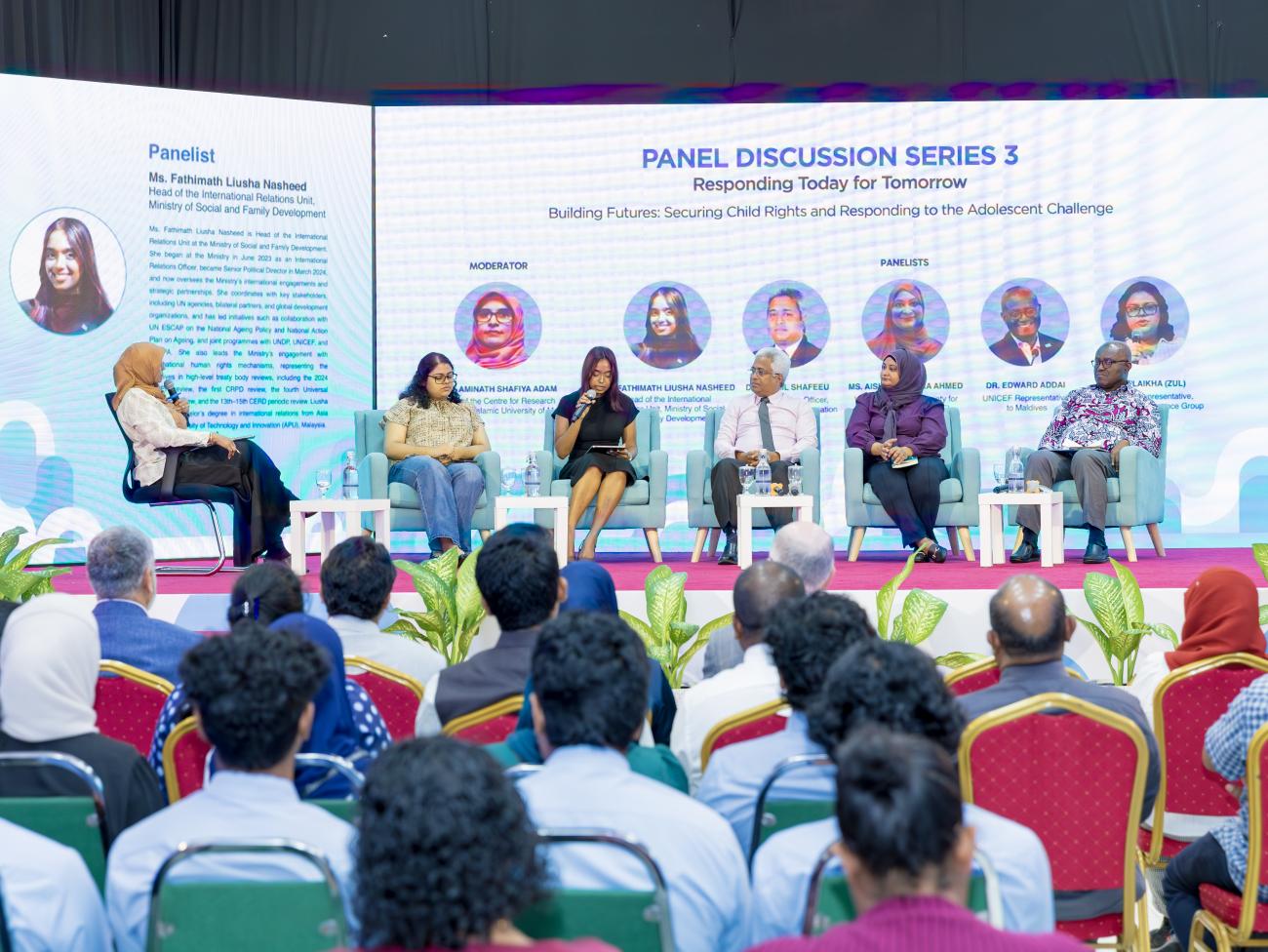 United Nations in Maldives in collaboration with the Government of Maldives, convened the third panel discussion in the MV60_UN80 series, titled “Responding Today for Tomorrow,” at the Islamic University of Maldives, commemorating the Maldives’ 60th anniversary of UN membership and the UN’s 80th anniversary. co-hosted by the Ministry of Foreign Affairs and the UN Resident Coordinator’s Office, in partnership with the UNICEF Maldives and Islamic University of Maldives, the session critically examined how demographic transitions influence the wellbeing and developmental opportunities of children and adolescents. Building on prior discussions in the series, the panel focused on strategies to sustain early childhood achievements while responding to the complex realities faced by adolescents.